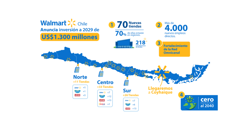 Walmart Chile anuncia inversión de US$1.300 millones con 70 nuevas tiendas en el país