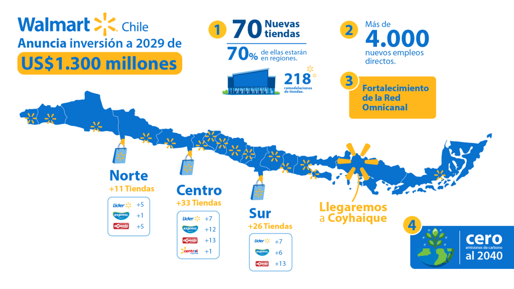 Walmart Chile anuncia inversión de US$1.300 millones con 70 nuevas tiendas en el país